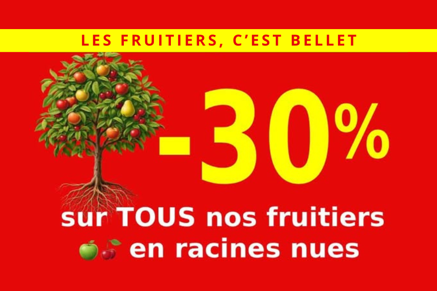 La saison de plantation est idéale pour planter vos arbres fruitiers, et les Pépinières Bellet vous accompagnent pour créer un verger productif et durable. Du 4 au 14 février 2026, profitez d’une offre exceptionnelle : -30 % immédiat sur tous nos fruitiers en racines nues. Que vous rêviez de pommiers, poiriers, cerisiers, pruniers, pêchers ou abricotiers, c’est le moment parfait pour passer à l’action !